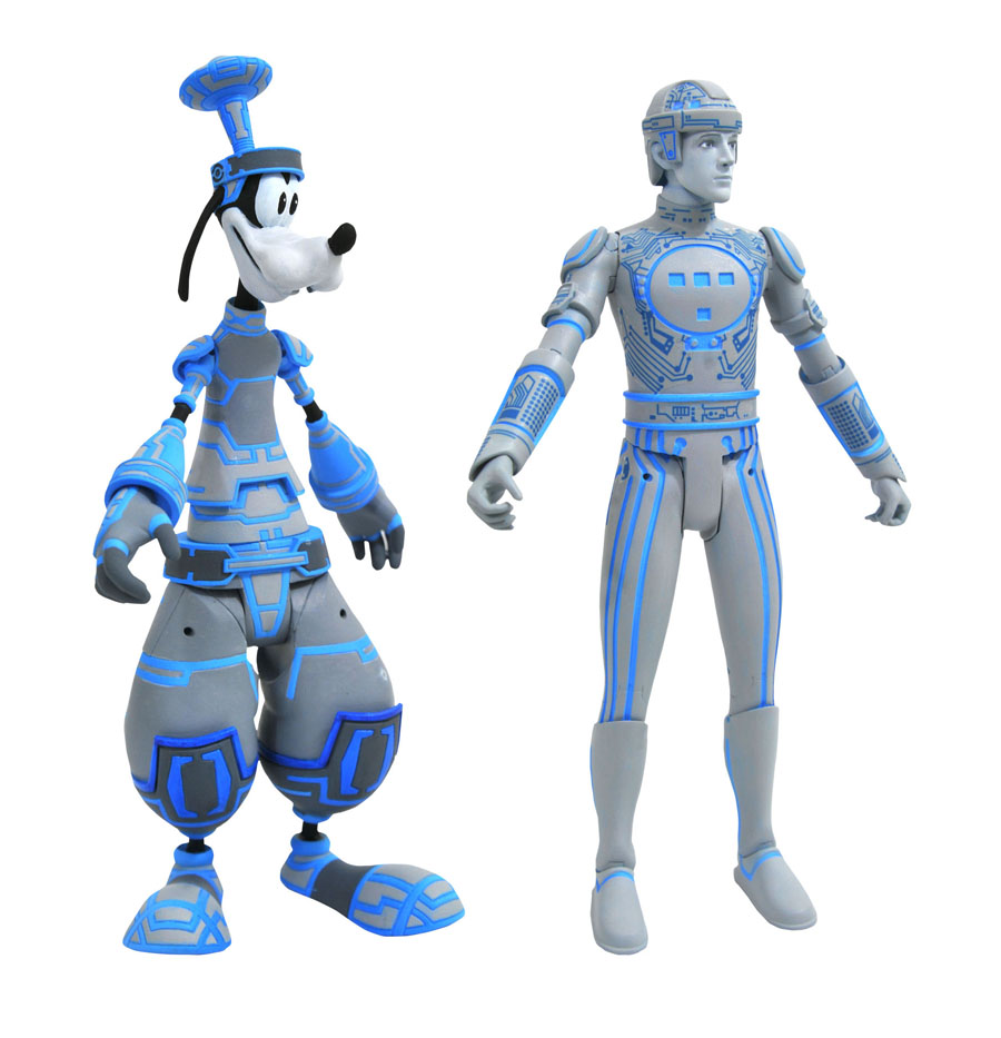 A Diamond Select Toys release! Are you ready to play Space Paranoids? The Kingdom Hearts Select action figure line travels to the video game universe of Space Paranoids, where everyone gets a high-tech makeover! This assortment of multi-character figure sets includes Black Coat Mickey Mouse with a Heartless Assassin and a Shadow, Space Paranoids Goofy with Tron, and Space Paranoids Sora (with Photon Debugger) with Sark! Each figure features multiple points of articulation and is sculpted in a 1/10th scale, and comes packaged in display-ready Select packaging with side-panel artwork for shelf reference. Sculpted by Oluf W. Hartvigsen! (Item #JUL182491, SRP: $24.99/ea.)