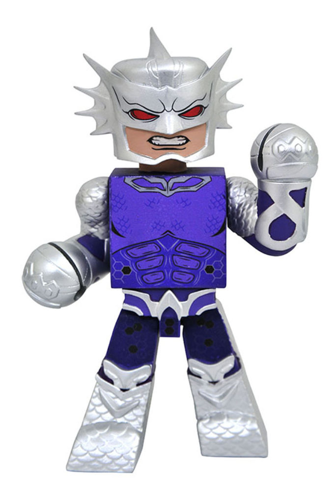 A Diamond Select Toys release! DC Vinimates are taking the ocean by storm! These 4-inch vinyl figures capture the undersea world of the Aquaman movie in their signature blockish style, striking dynamic poses inspired by the film! Aquaman, Black Manta and Ocean Master comprise the first assortment, and they are in scale to all other DC Vinimates. Each comes packaged in a full-color window box. Designed by Barry Bradfield!