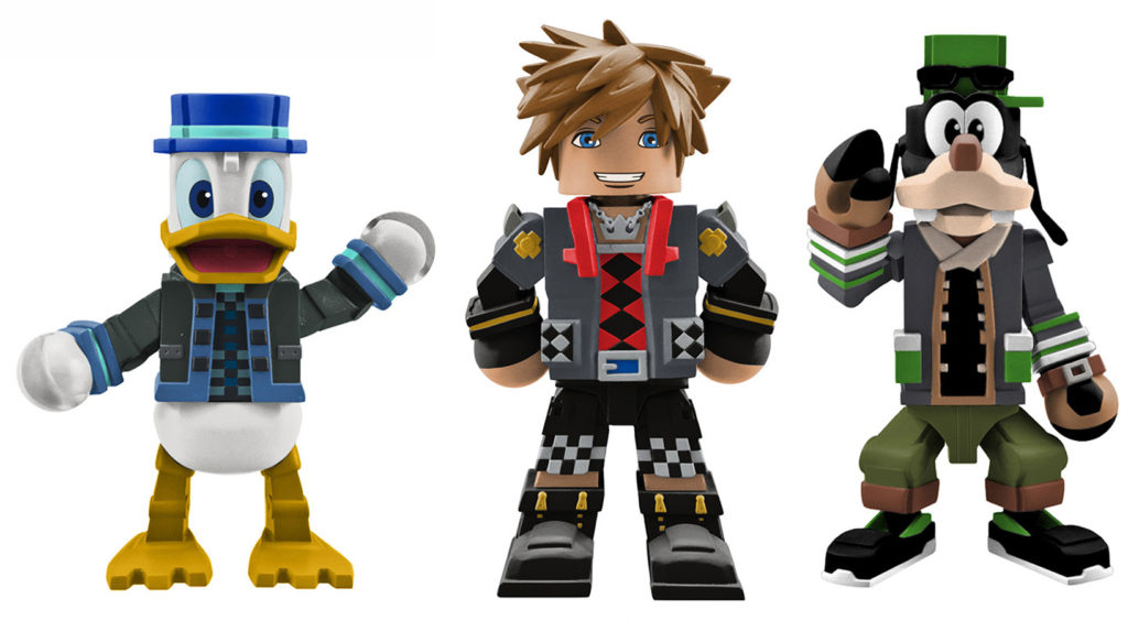 In comic shops and specialty stores, the Kingdom Hearts 3 Vinimates vinyl figures are based on the game’s new Toy Story looks. Featuring Sora, Donald and Goofy, each 4-inch block-styled figure has an articulated neck for additional posing options.