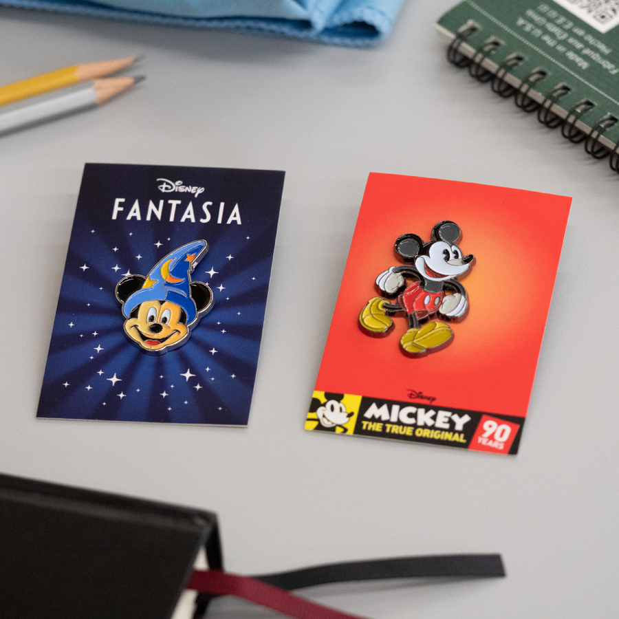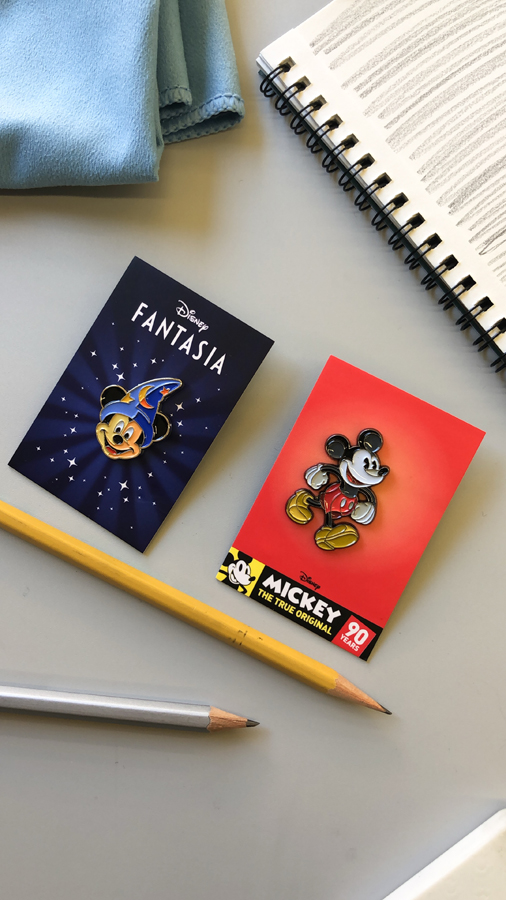 Seasoned veteran Tom Whalen and design powerhouse DKNG Studios offer up their treatments of Sorcerer Mickey and the classic Mickey, respectively. Each month collectors can expect brand new pin designs encompassing the wide range of Disney’s film and television legacy from vaulted treasures to modern classics.