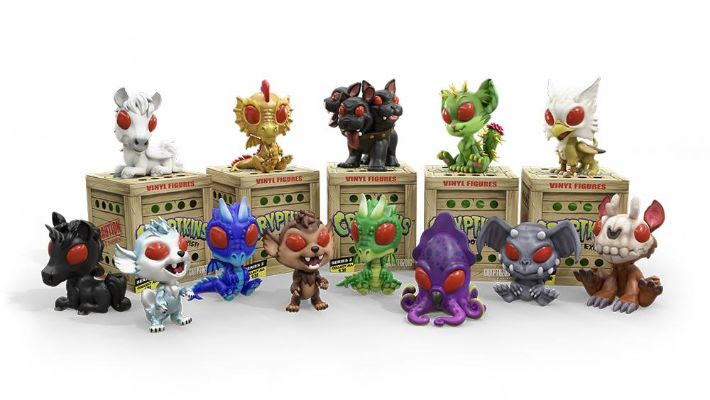 Cryptkins: Series 2: The second set of 2.25-inch figures based on Cryptozoic’s popular original IP features Kraken, Cerberus, Unicorn, Gryphon, and Blue Dragon, among many other creatures that have been the subject of folklore and tabloid headlines. It includes 13 vinyl figures in all, plus six hard-to-find Bone-Chilling Variants that feature bones painted on the exteriors of the figures. Each figure comes packaged inside a collectible blind-reveal miniature crate that includes a Bio Card with a drawing and additional information about the creature.