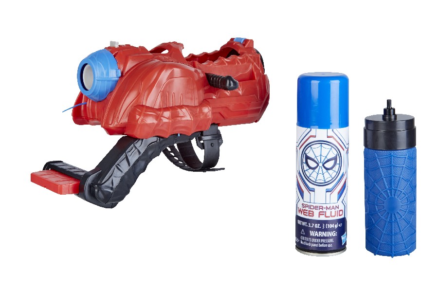 With the all-new SPIDER-MAN: FAR FROM HOME WEB CYCLONE BLASTER, kids are ready to swirl webs like SPIDER-MAN! Load the included can of web fluid or switch to water mode and soak your opposition with the included water canister! With the SPIDER-MAN: FAR FROM HOME WEB CYCLONE BLASTER, kids can imagine catching criminals in their web with 3 different modes of web fluid play, plus water blasting! Includes gauntlet, water canister, and a can of web fluid. Available at most major retailers.