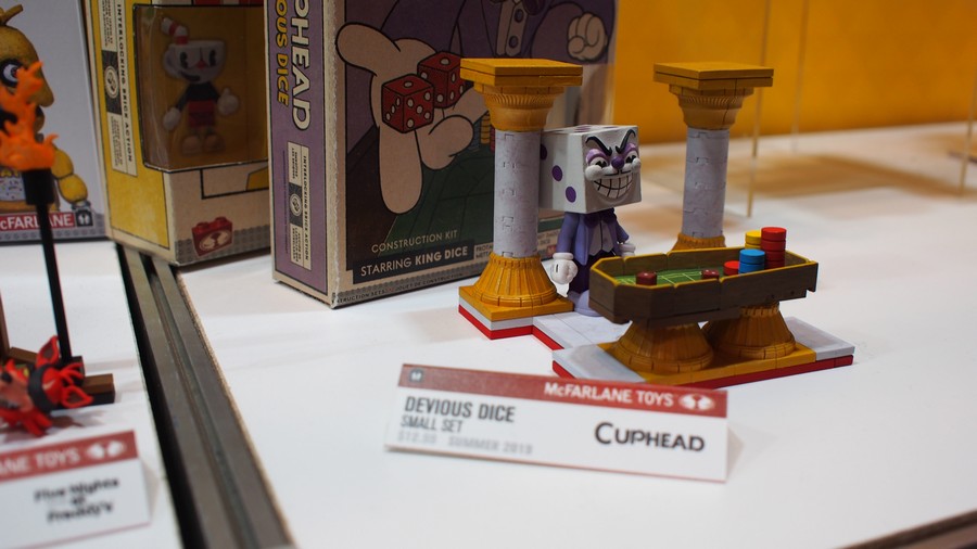 - Cuphead will be joining the McFarlane family of construction toys which feature some impressive packaging designs. New Five Nights at Freddy’s sets were also shown.