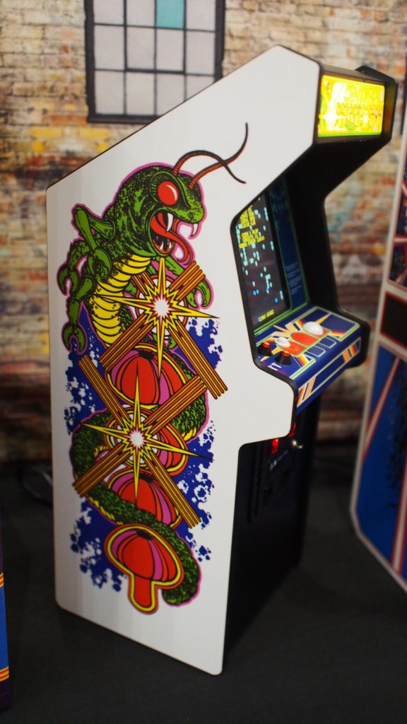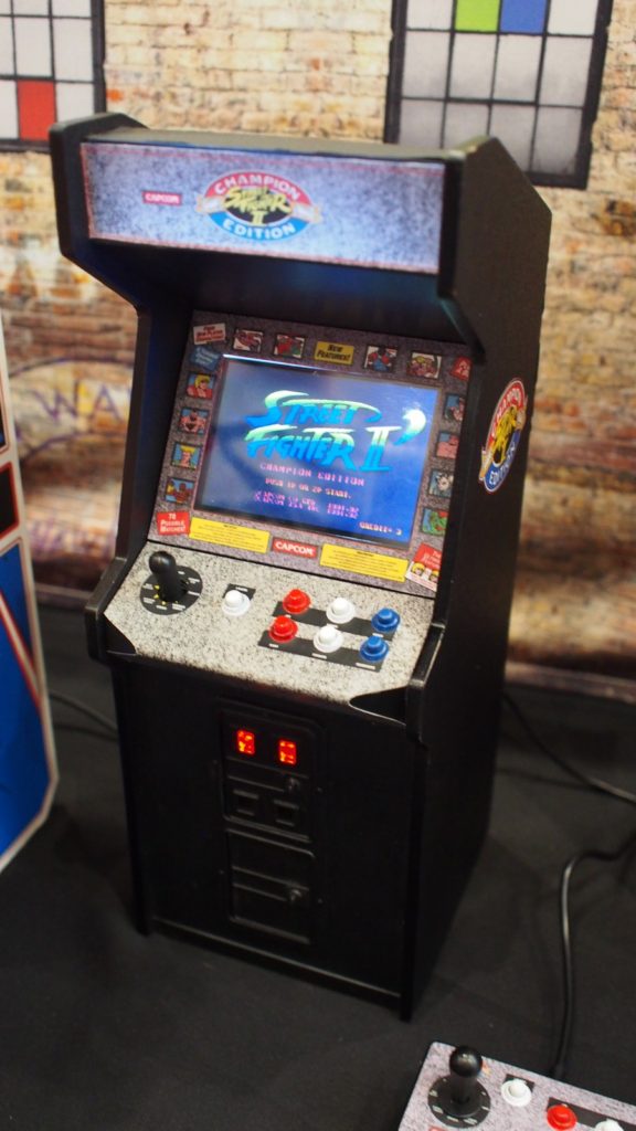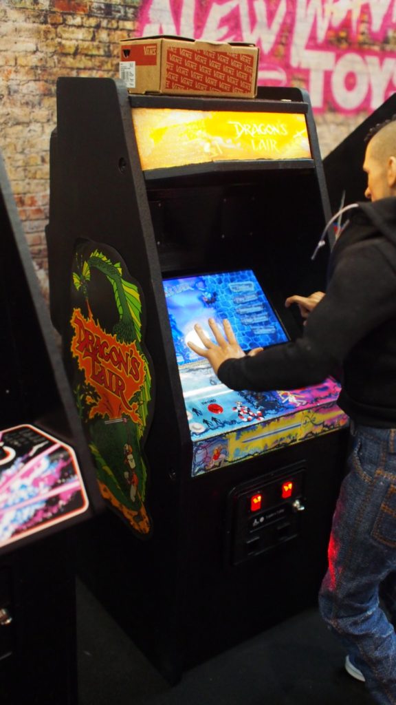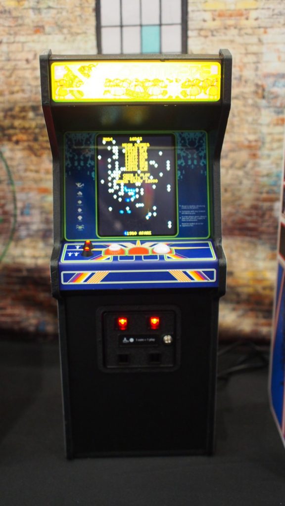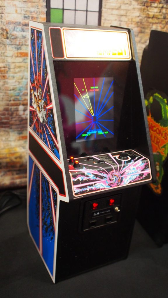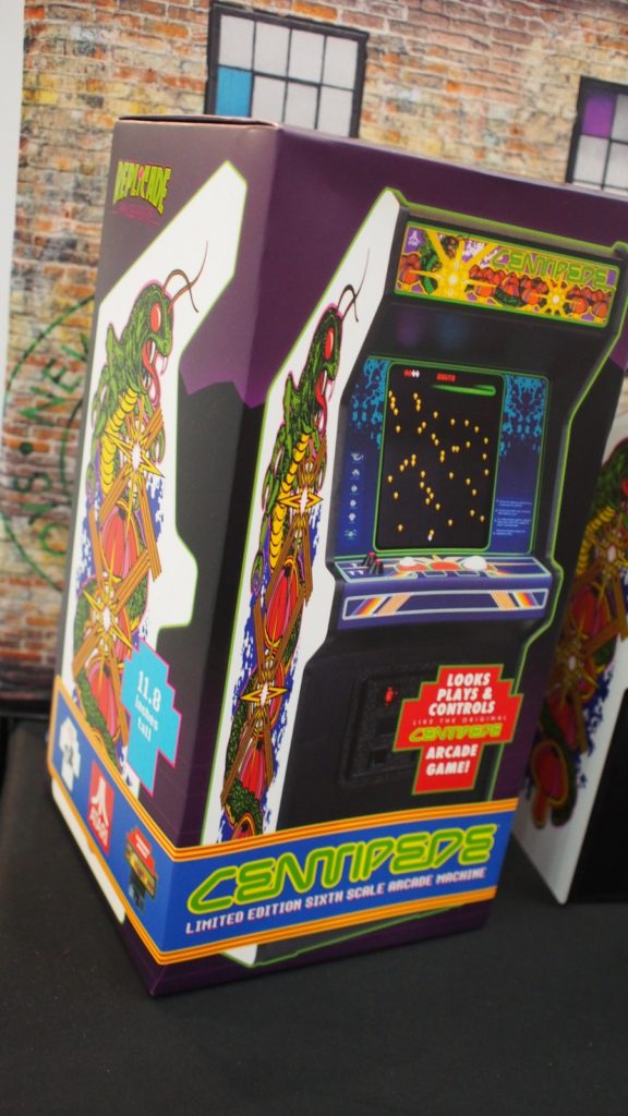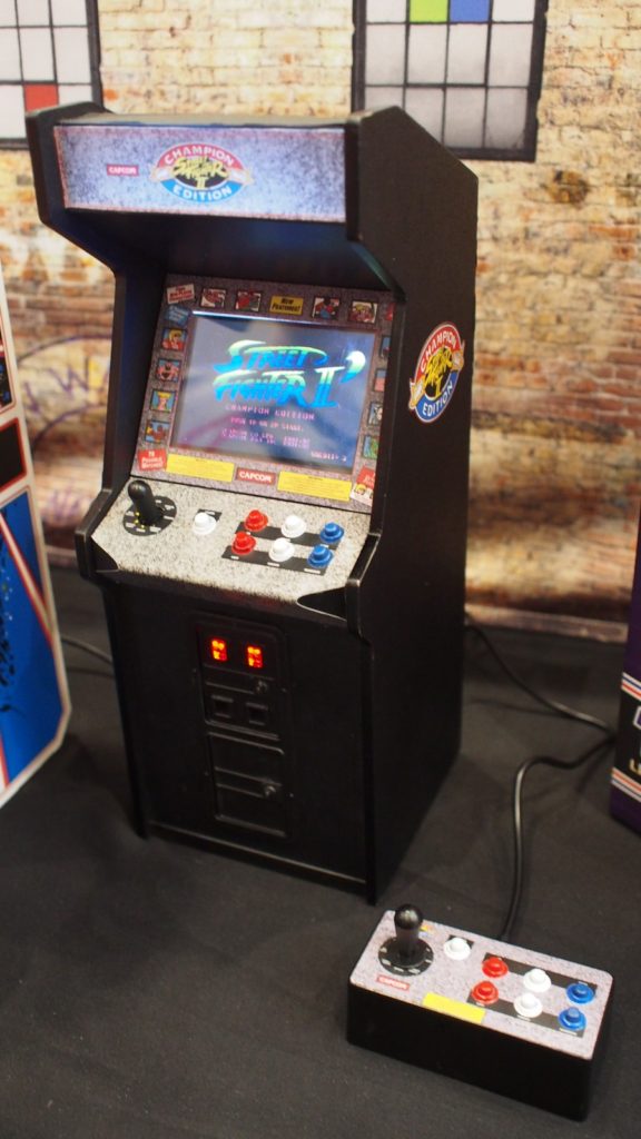 Titles on display at toy fair were Tempest, Centipede, Dragon’s Lair and Streetfighter II (which includes a 2nd control box so two people can play at the same time). Also on display was a 1:6 scale bill changer which serves as a USB hub for power. It’s also amazing.