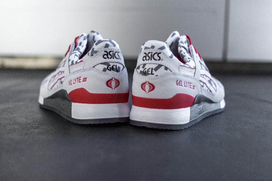 The line is inspired by an epic chapter in the G.I. Joe lore: the rivalry between Storm Shadow and Snake Eyes. Once brothers in arms as part of the Arashikage Clan, they find themselves on opposing sides of the struggle between G.I. Joe and Cobra. Now Storm Shadow and Snake Eyes each adorn their own GEL-LYTE® III shoe designed by world renowned pop artist Anderson Bluu. Uncompromising on style and comfort, the GEL-LYTE® III boasts iconic and innovative design that wouldn’t be complete without the split tongue and ASICS’ famous GEL® technology cushioning; a silicone-like material that effectively absorbs shock and protects the feet from high-impact strikes.