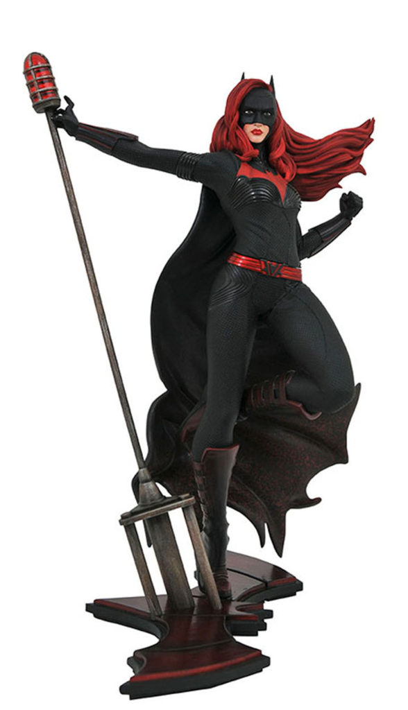 A Diamond Select Toys release! The newest heroine on the CW is none other than Batwoman! Based on her appearance in the Arrowverse crossover, this PVC diorama of Batwoman hanging from a radio antenna bears the likeness of actress Ruby Rose and is made of high-grade plastic. This approximately 9-inch sculpture features detailed sculpting and paint applications and comes packaged in a full-color window box. Designed by Shawn Knapp, sculpted by Cortes Studios! (Item #MAR192440, SRP: $49.99)