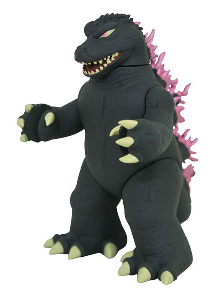 A Diamond Select Toys release! The King of All Monsters is now the King of All Vinimates! Godzilla and Mechagodzilla headline the first series of 4” vinyl figures based on the classic Godzilla films! The black-and-white Godzilla of 1954 and the full-color Godzilla of 1999 team up against their robot doppelganger, and each has an articulated neck to customize their pose. Each comes packaged in a full-color window box. Designed by Barry Bradfield!