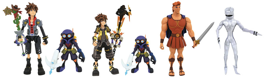 A Diamond Select Toys release! The new Kingdom Hearts game is final here, and DST has more figures to celebrate! Based on Kingdom Hearts 3, this assortment of three multi-packs includes Hercules with a Dusk, Toy Story Sora with an Air Soldier and the Favorite Deputy Keyblade, and Guardian form Sora with an Air Soldier and the Hero’s Origin Keyblade! Each 7-inch scale action figure features a full range of articulation, and each set comes packaged in display-ready Select figure packaging. Sculpted by Oluf W. Hartvigsen! (Item #MAR192444, SRP: $24.99/ea.)