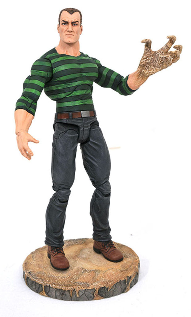 A Diamond Select Toys release! Time for lights-out! The Sandman is coming, and he’s got the sand to take on Spider-Man — and all of the heroes in your Marvel Select collection! Wearing his classic striped shirt, Flint Marko features legs that can change to a tower of sand, and interchangeable sand fist, claw, and spiked mace pieces! Measuring approximately 7 inches tall, he comes packaged in display-ready Select packaging. Designed by Eamon O’Donoghue, and hand-sculpted by Jean St. Jean! (Item #MAR192448, SRP: $29.99)