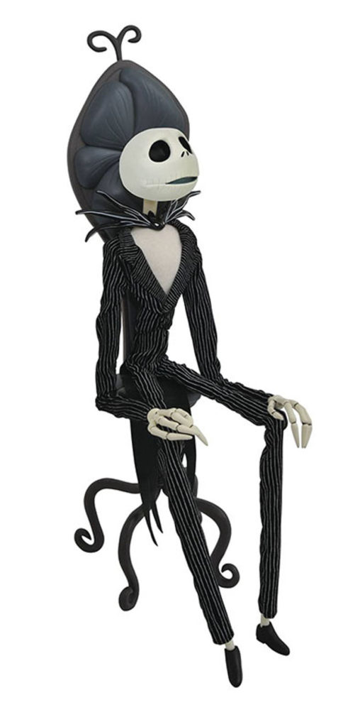 A Diamond Select Toys release! Jack Skellington rests his long, long legs in this new release in the Coffin Doll Collection! Coming with a stylish office chair, Jack stands approximately 16 inches tall and features a real cloth costume, making him look like he just stepped off the screen. He also features 9 points of articulation and an exclusive head sculpt, and comes packaged in a coffin-shaped window box. (Item #MAR192449, SRP: $74.99)