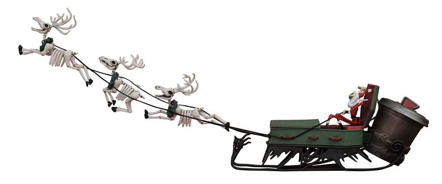 A Diamond Select Toys release! Sandy Claws is coming! This deluxe PVC set from Tim Burton’s The Nightmare Before Christmas features Jack in his coffin sleigh, pulled by three skeletal reindeer and led by a tiny figurine of Zero! Set it up on your mantle to let everyone know that a horrific Christmas is on its way! Packaged in a full-color window box. (Item #MAR192450, SRP: $124.99)