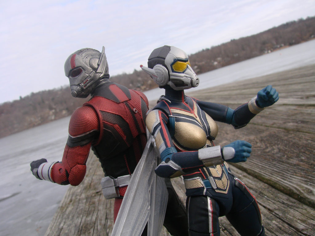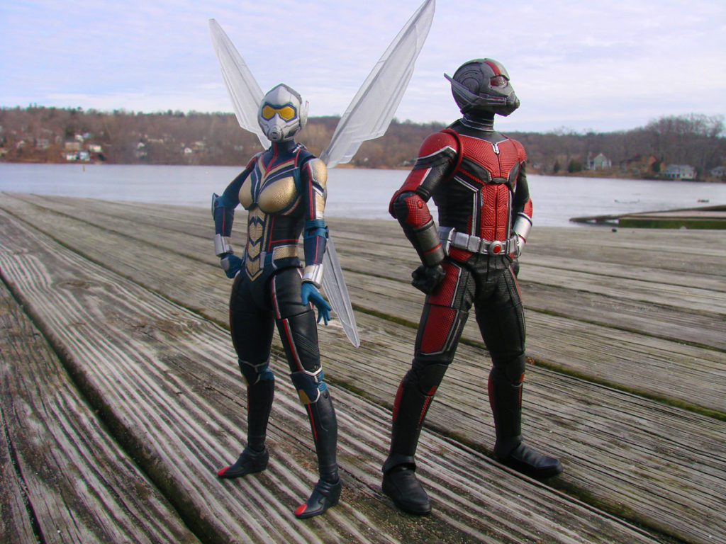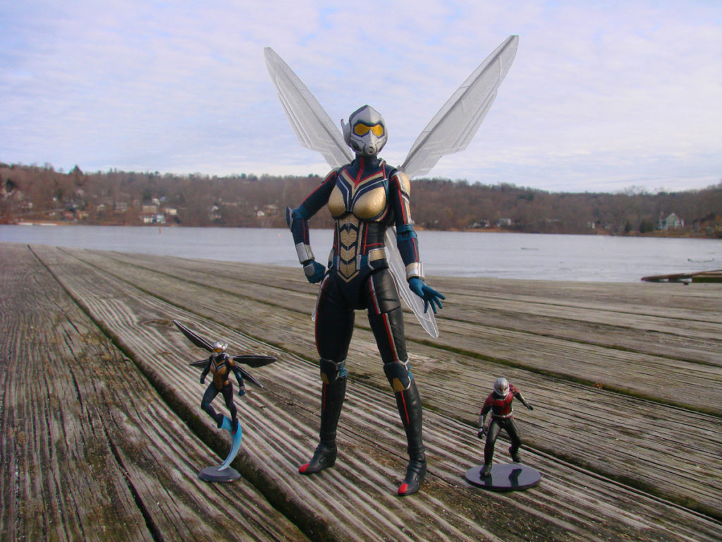 Ant-Man comes with posed figurines of Janet Van Dyne’s Wasp, Hank Pym as Ant-Man and Hank Pym in his Quantum Realm suit. The Wasp comes with figurines of Scott Lang as Ant-Man and Hope Van Dyne as The Wasp. Each mini-figure comes with a display base.