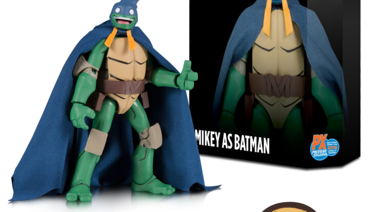 The Previews SDCC Exclusives have been announced and DC Collectibles has a special item – a figure which crosses TMNT’s Michelangelo with the Dark Knight, based on the DC Comics crossover. Accesories for this special figure includes a sewer lid, a slice of pizza and two extra sets of hands. Check the figure out below..and pre-order at AwesomeToyBlog sponsor Entertainment Earth.