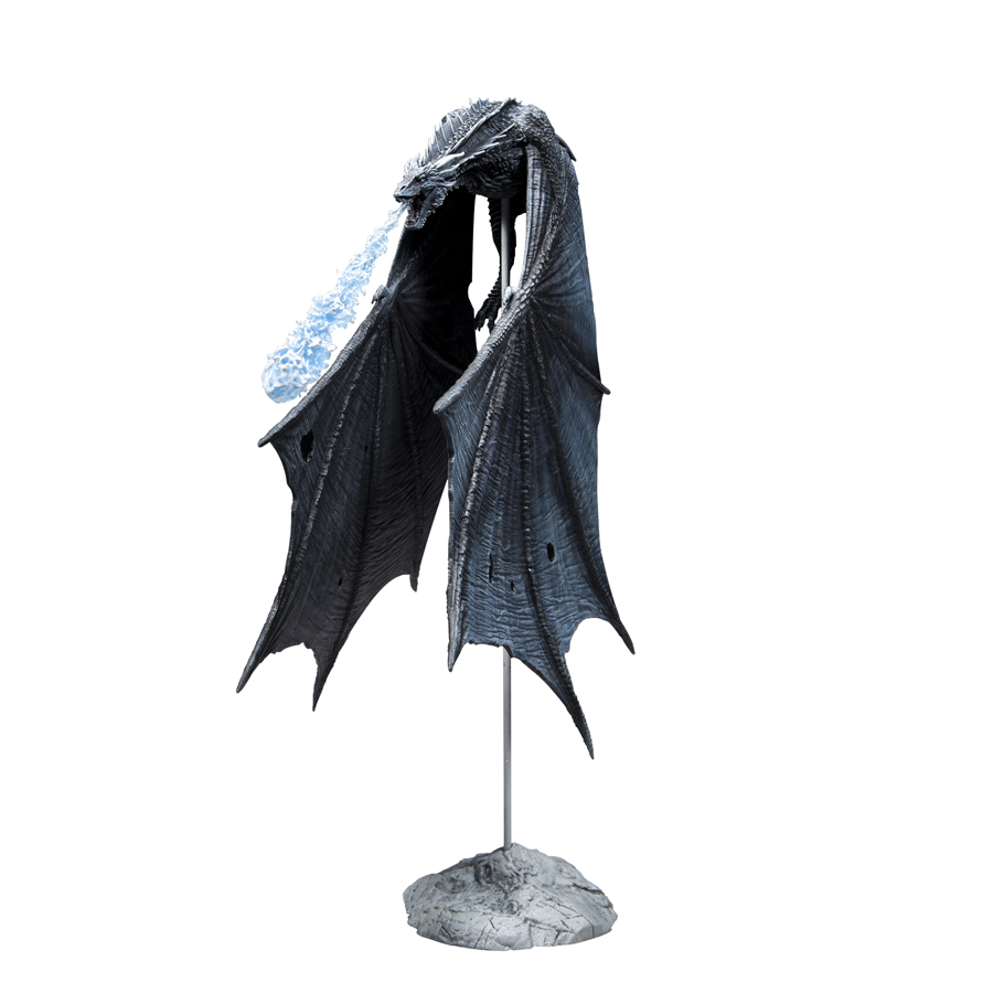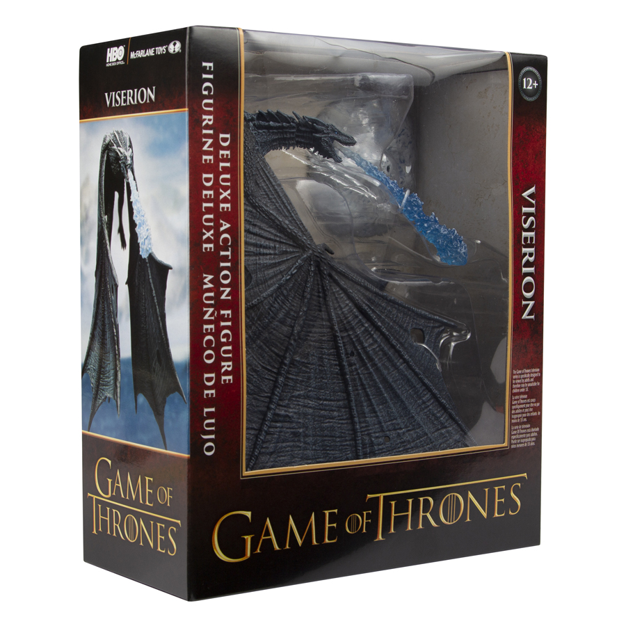 n is featured in his ice dragon form from the season 7 finale of Game of Thrones. With a movable tail, legs, wings, and neck, this deluxe figure has more than 10 points of articulations. Viserion’s wings span 16.5″ wide and move up and down. He also comes with a removable burst of blue fire and measures 9″ x 16.5″ x 10.5″ fully displayed on an elevated base. Available now at Best Buy, Target and Amazon.com. MSRP $25.99.