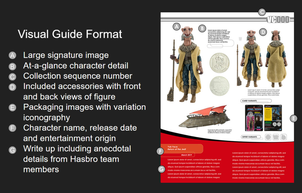 Written by Derryl DePriest, former Vice President of Global Brand Management and Star Wars brand team leader at Hasbro, the book comprises approximately 300 pages detailing TVC action figures, creatures, vehicles and playsets. Each item in the collection will feature a write-up informed by inside knowledge from the design and marketing team, and will be accompanied by crisp, high-resolution photos. The volume will be printed on premium-quality paper, bound in a deluxe hardcover.