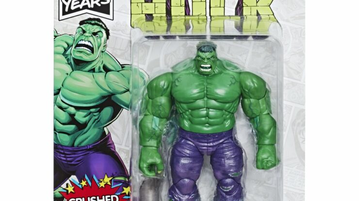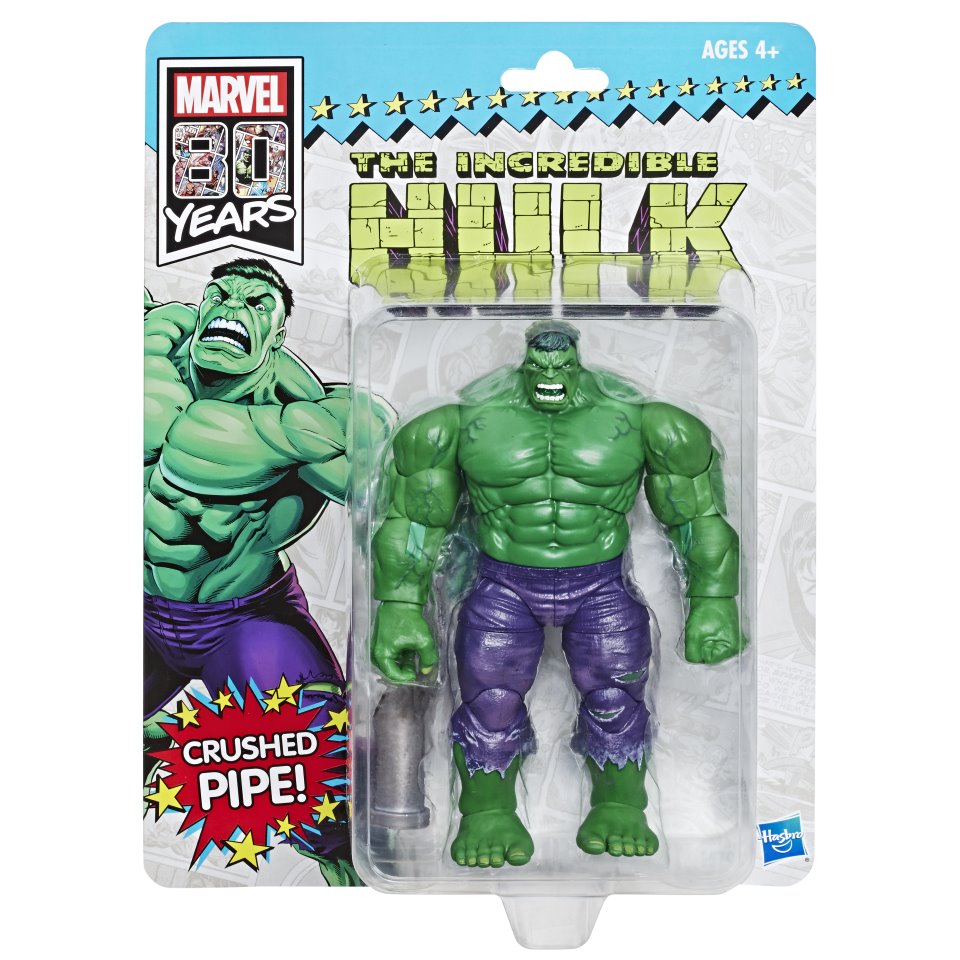Hasbro today shared their first 2019 SDCC exclusive Marvel Legends figure – a single carded ‘vintage style’ Incredible Hulk. Priced at $35 and presented on a ToyBiz-style card. The figure itself is the Marvel 80th collection Hulk, repainted with a new head, no ripped shirt piece and a CRUSHED PIPE!