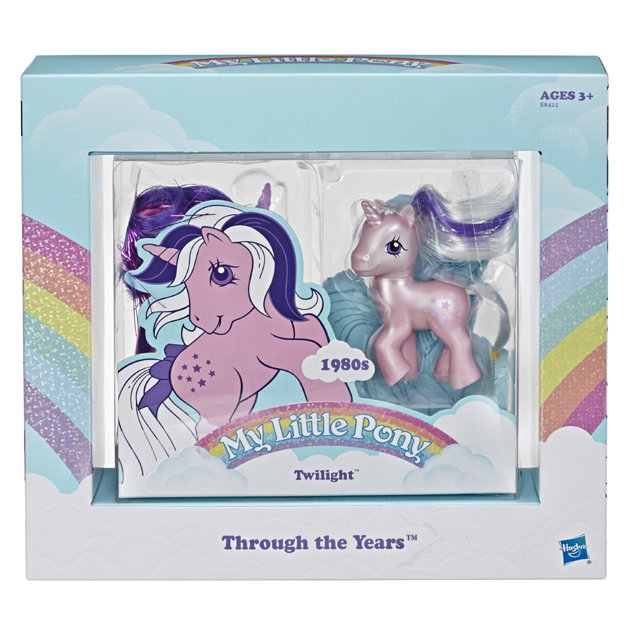 Discover and display a beloved MY LITTLE PONY character in 2 exciting forms: 1980s-inspired TWILIGHT figure and 2019 Twilight Sparkle figure! Through the Years collectible pack features 2 iterations of this favorite MY LITTLE Pony character, each in a unique 3-inch style. TWILIGHT unicorn figure has a retro form factor inspired by her original character design. This vintage-inspired TWILIGHT figure has a shimmering, pearlized treatment and 80s-inspired styling. Pack also includes 3-inch TWILIGHT SPARKLE figure inspired by her current look in MY LITTLE PONY: FRIENDSHIP IS MAGIC entertainment. 2019 TWILIGHT SPARKLE figure has rooted hair with bangs and a metallic cutie mark. For the first time, new and longtime MY LITTLE PONY fans can collect a TWILIGHT SPARKLE figure alongside the original -inspiration for her character! Deluxe retro-themed packaging makes a great display case for this special edition convention exclusive. Available at San Diego Comic-Con 2019 and on Hasbro Pulse following the convention.