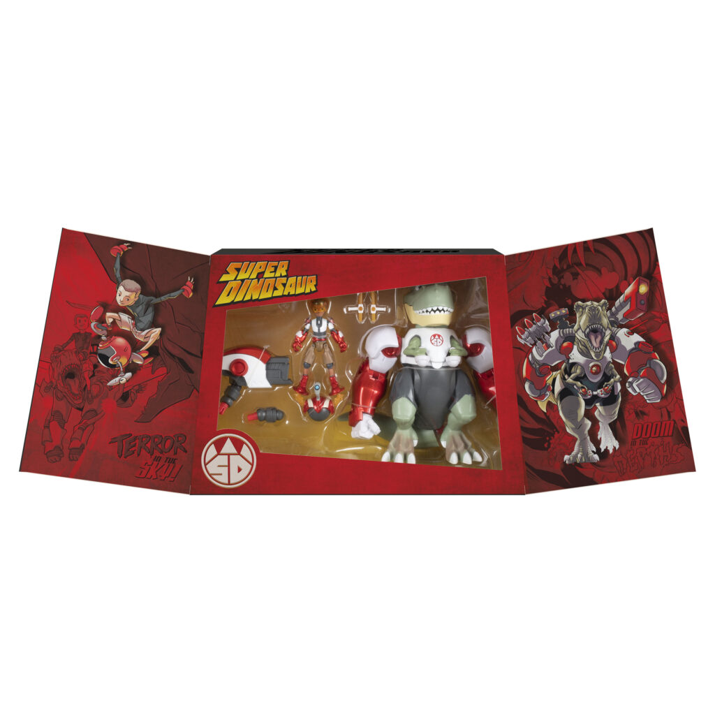 Skybound Entertainment has unveiled a new SUPER DINOUSAR figure pack that will make its debut at San Diego Comic-Con. The set consists of Derek Dynamo and his T-Rex best friend Super Dinosaur, the main characters from Robert Kirkman and Jason Howard’s children’s comic book series.