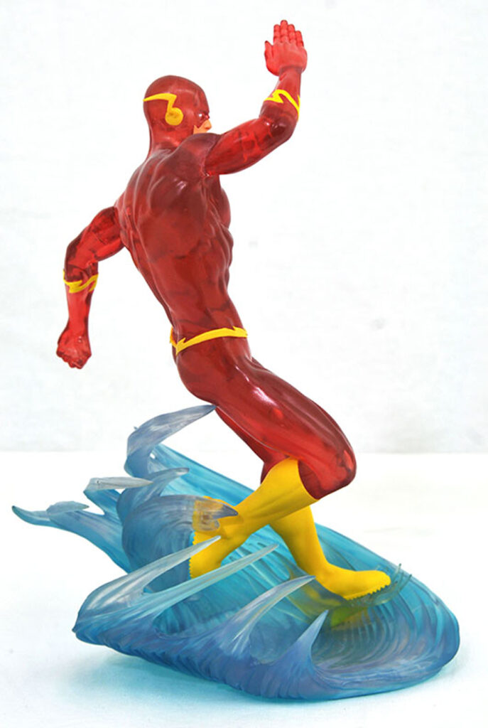 Time to enter the Speed Force! This exclusive 9-inch scale PVC diorama of the Flash racing across a wave is the latest in the DC Gallery line. Made from high-quality plastic, this detailed translucent sculpture delivers the look of a resin statue at a fraction of the price, and is in scale to all Gallery and Femme Fatales PVC dioramas. Flash Fact: It comes packaged in a full-color window box, and is limited to only 7,000 pieces! Designed by Caesar, sculpted by Joe Menna. $50