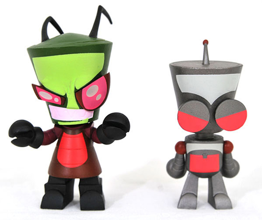 Doom! This exclusive Extra Doom Edition of Zim and Gir shows them at their most evil, all shadowy and doom-forecasting. Each 4-inch-scale vinyl figure has an articulated head, and both come packaged in a full-color window box. Limited to 250 pieces. Designed by Barry Bradfield! $20