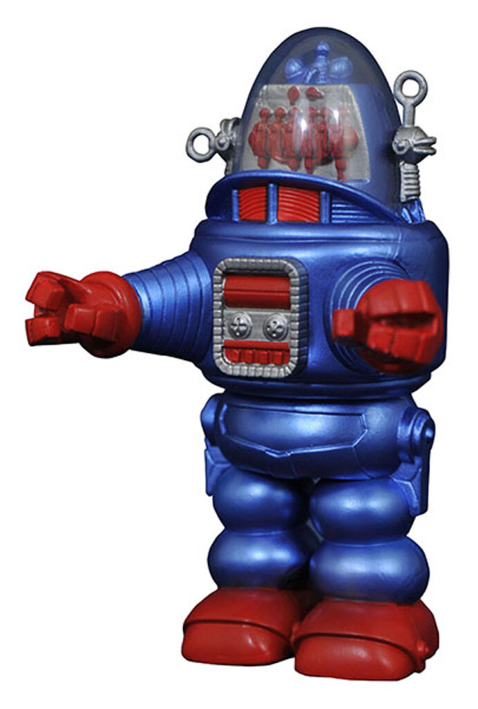 Robby the Robot gets a new paint job in this new exclusive Vinimates vinyl figure! Sporting a classic red-and-blue color scheme inspired by the tin toys of yesteryear, this 4-inch vinyl toy comes in a full-color window box. Limited to 250 pieces. $10