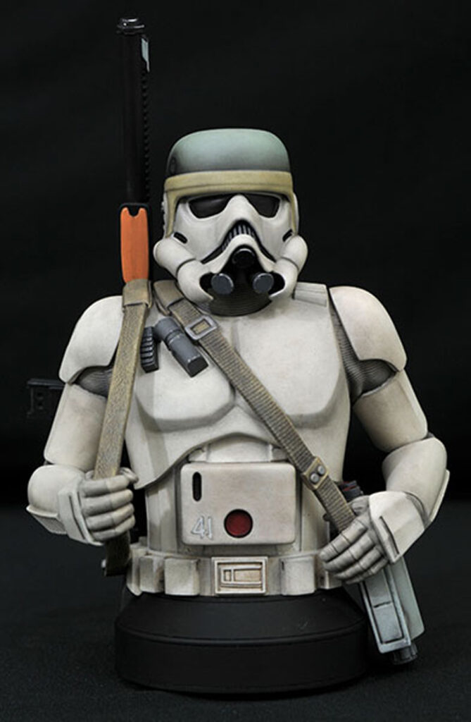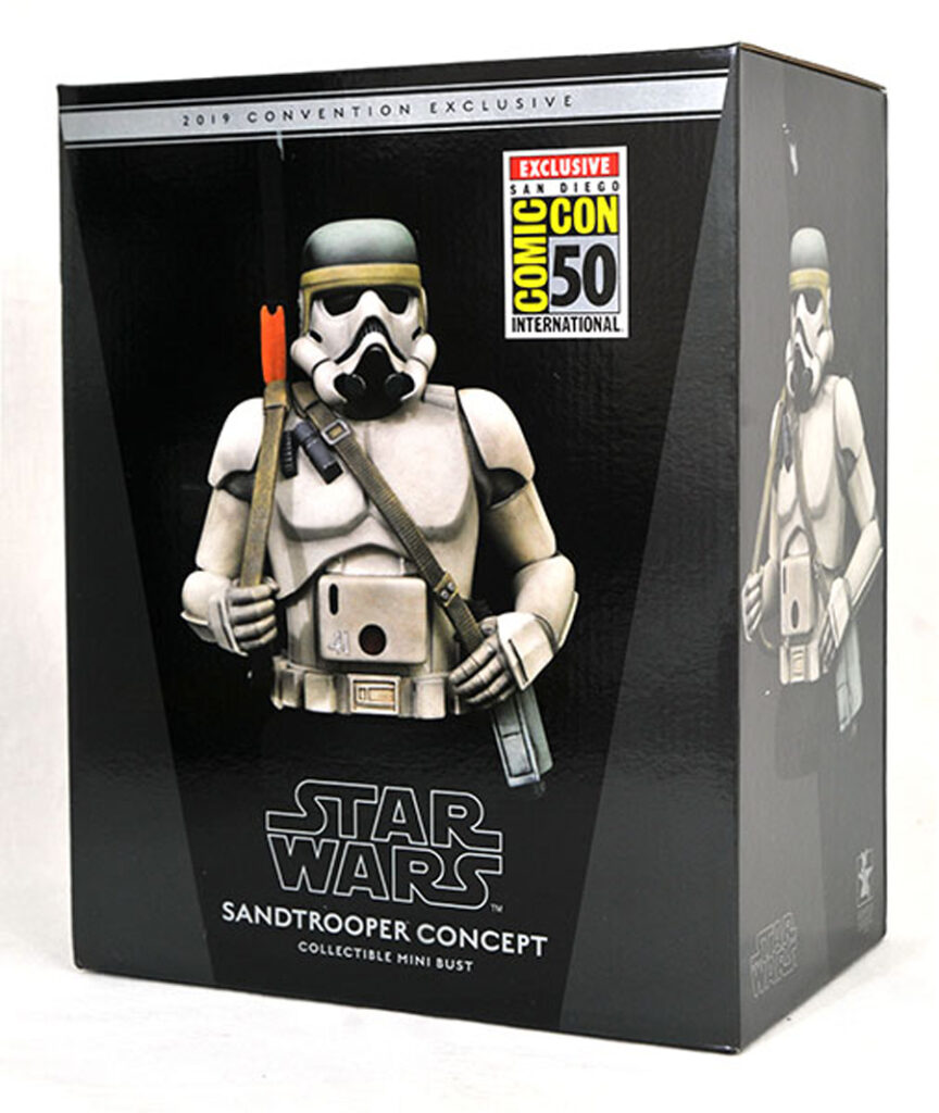 This exclusive mini-bust is inspired by the pre-visualization artwork of the original Star Wars films. Depicting one of the first known illustrations of a sandtrooper, this 6-inch scale bust is limited to 750 pieces and comes packaged in a full-color box with a certificate of authenticity. Designed and sculpted by Gentle Giant Studios. $120