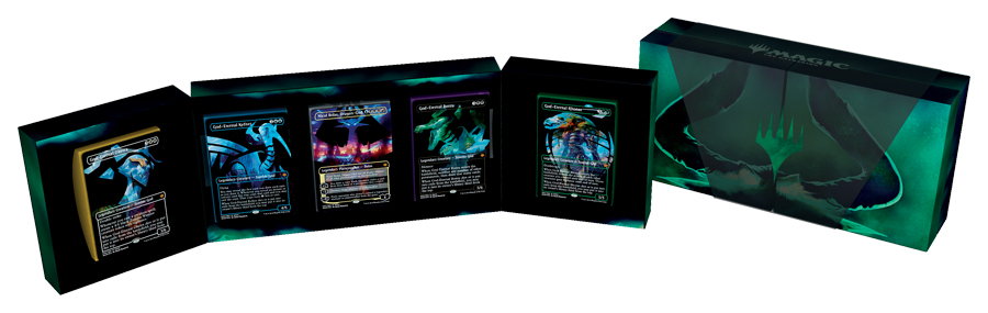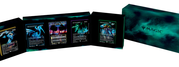 The collection will have limited-availability at SDCC and features Nicol Bolas and the four God-Eternals from War of the Spark presented in premium, cinematic packaging. There will be beautiful exclusive artwork by Adam Paquette that complements special frame treatments.