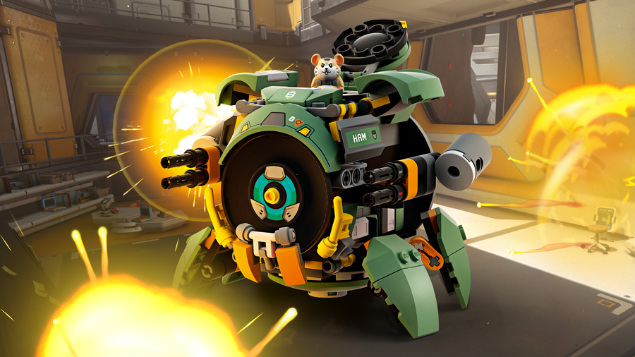- This LEGO® Overwatch® playset features a Hammond hamster figure that can pop up from the cockpit by turning a handle for added fun.