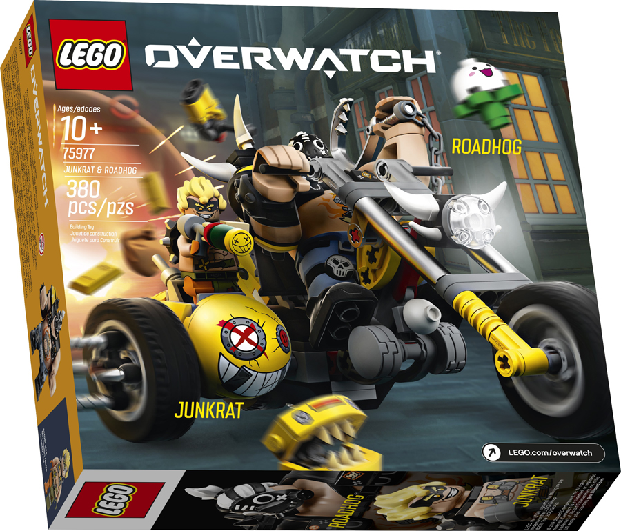 Now your favorite Overwatch® fan can build a part of Junkertown out of LEGO® bricks with the 75977 Junkrat & Roadhog set. Based on the internationally acclaimed team-based action game, this Overwatch toy set recreates the apocalyptic atmosphere of Junkertown, a highly popular Overwatch map. This playset features the iconic crime duo from Overwatch: Roadhog and Junkrat. Roadhog comes as a large, highly-detailed BigFig with his Chain Hook and Scrap Gun. The minifigure Junkrat has his iconic peg-leg and Frag Launcher. Fans and kids alike will love the authentic character details, the yellow chopper bike and display diorama inspired by the Junkertown map.