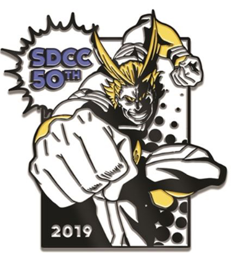 Description: Exclusive. Limited to 1000. Officially licensed 2019 San Diego Comic Con Exclusive My Hero Academia SDCC 50th Anniversary All Might Enamel Pin. Pin measures approximately 2″ tall.