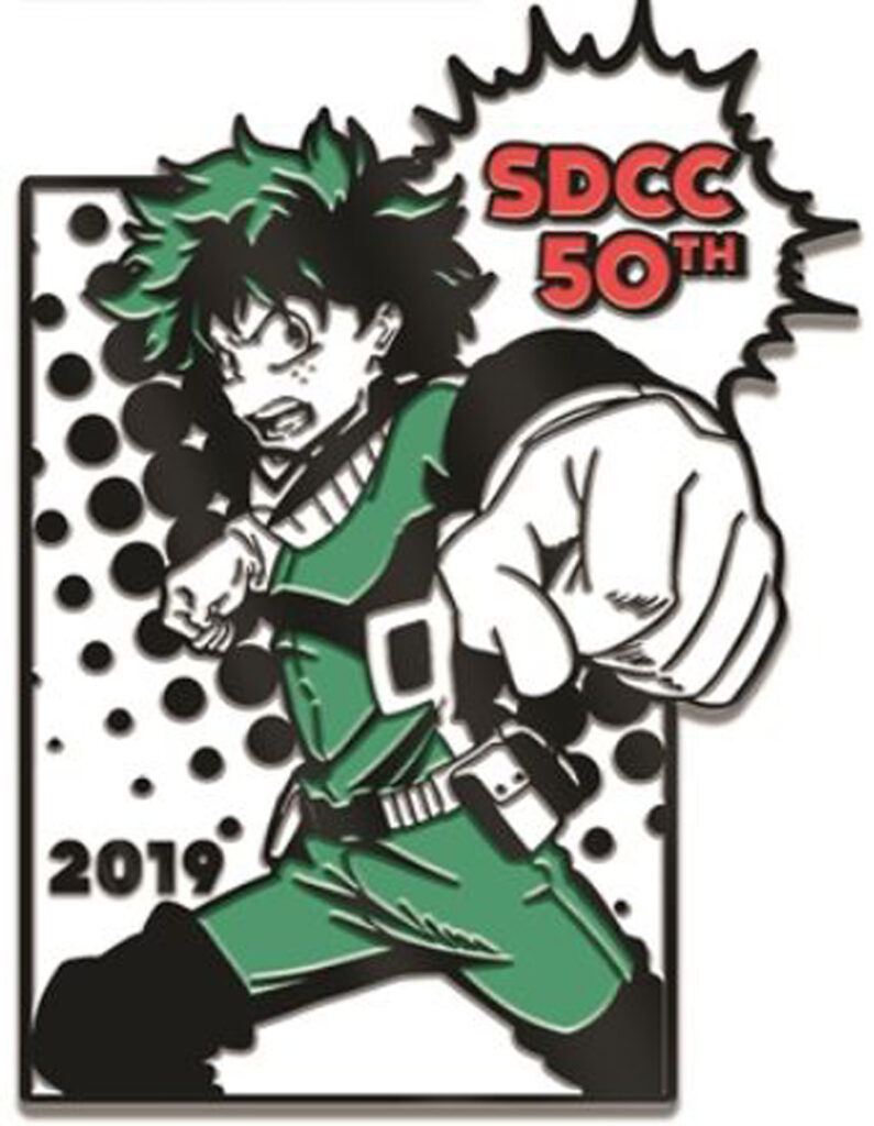 Description: Exclusive. Limited to 1000. Officially licensed 2019 San Diego Comic Con Exclusive My Hero Academia SDCC 50th Anniversary Izuku Midoriya Enamel Pin. Pin measures approximately 2″ tall.