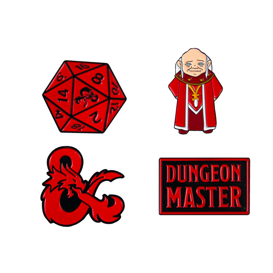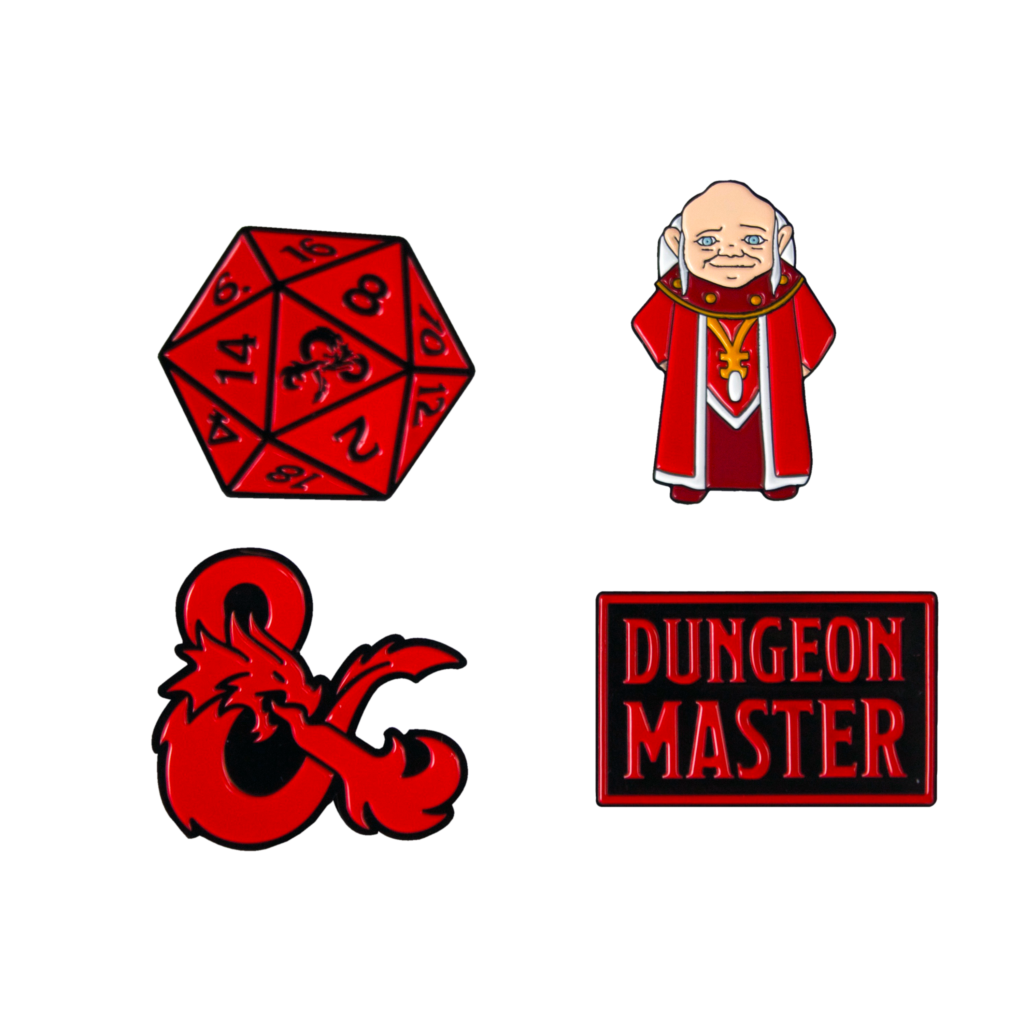Description: Exclusive. Limited to 1000. Officially licensed 2019 San Diego Comic Con Exclusive Dungeons & Dragons 4 Enamel Pin Set. Set includes D&D die, Ampersand Logo, Dungeon Master Character, and Dungeon Master Logo Pins. Each pin measures approximately 1.5″.