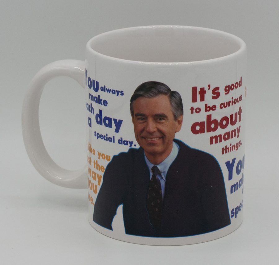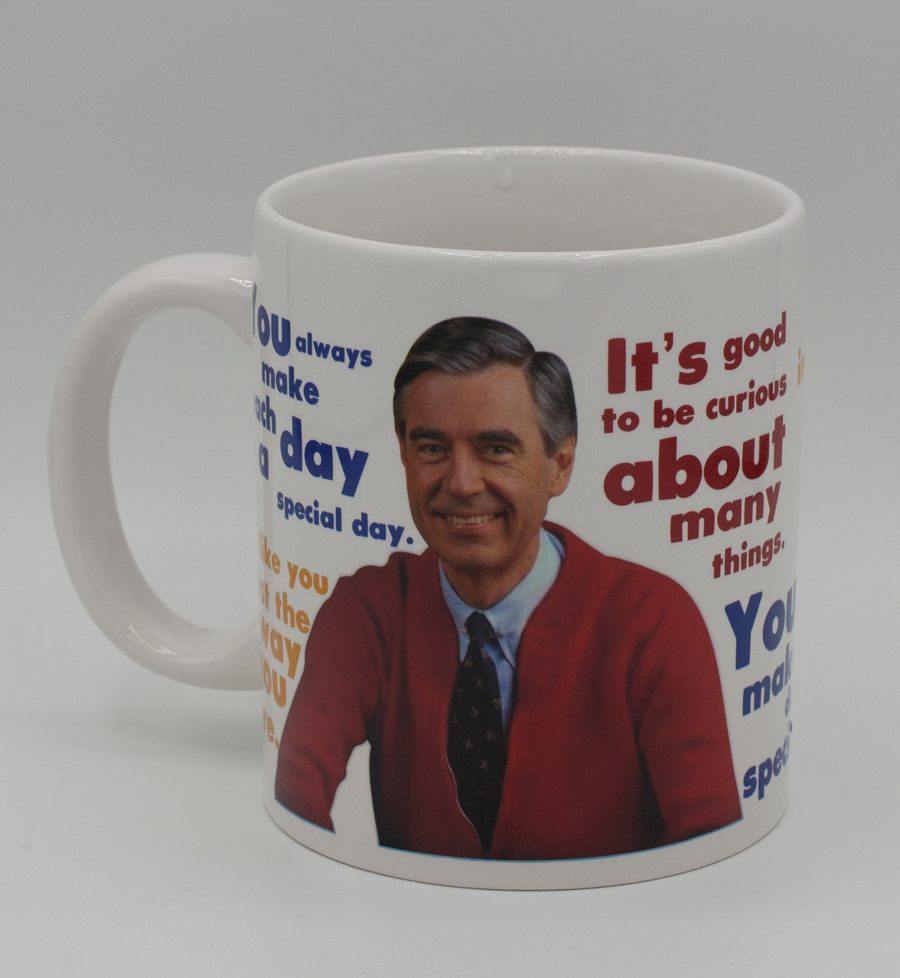 Description: Debut. Officially licensed 2019 San Diego Comic Con Debut Mr. Rogers Mug. This 16oz ceramic mug features Mr. Rogers. When cold Mr. Rogers sweater is blue, when hot his sweater changes to red! Hand wash, do not microwave.