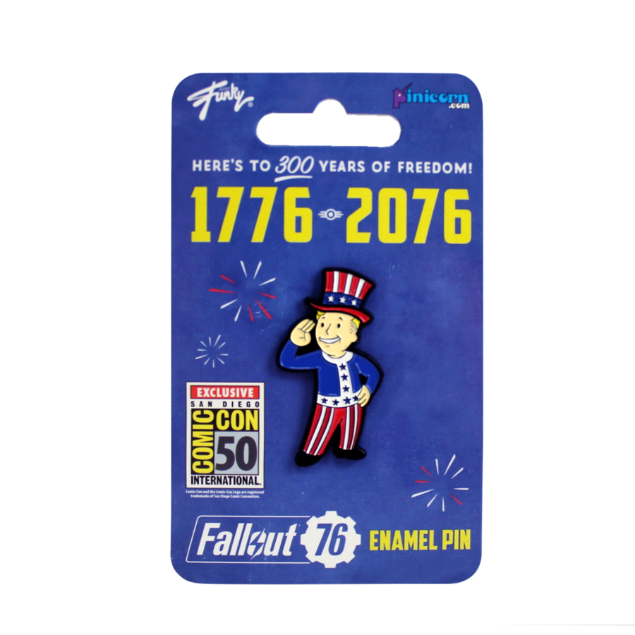 Description: Exclusive. Limited to 1000. Officially licensed 2019 San Diego Comic Con Exclusive Fallout Enamel Pin. Pin features Vault Boy Uncle Sam and measures approximately 1.75″.
