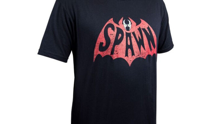 There are two t-shirts available including the SPAWN Orb T-shirt and the SPAWNParody T-shirt. The SPAWN Orb T-shirt features the classic SPAWN logo. The SPAWNParody T-shirt pays homage to the anti-hero’s iconic red cape. Both shirts are available in sizes ranging from small to 3X and are priced at $25.00.