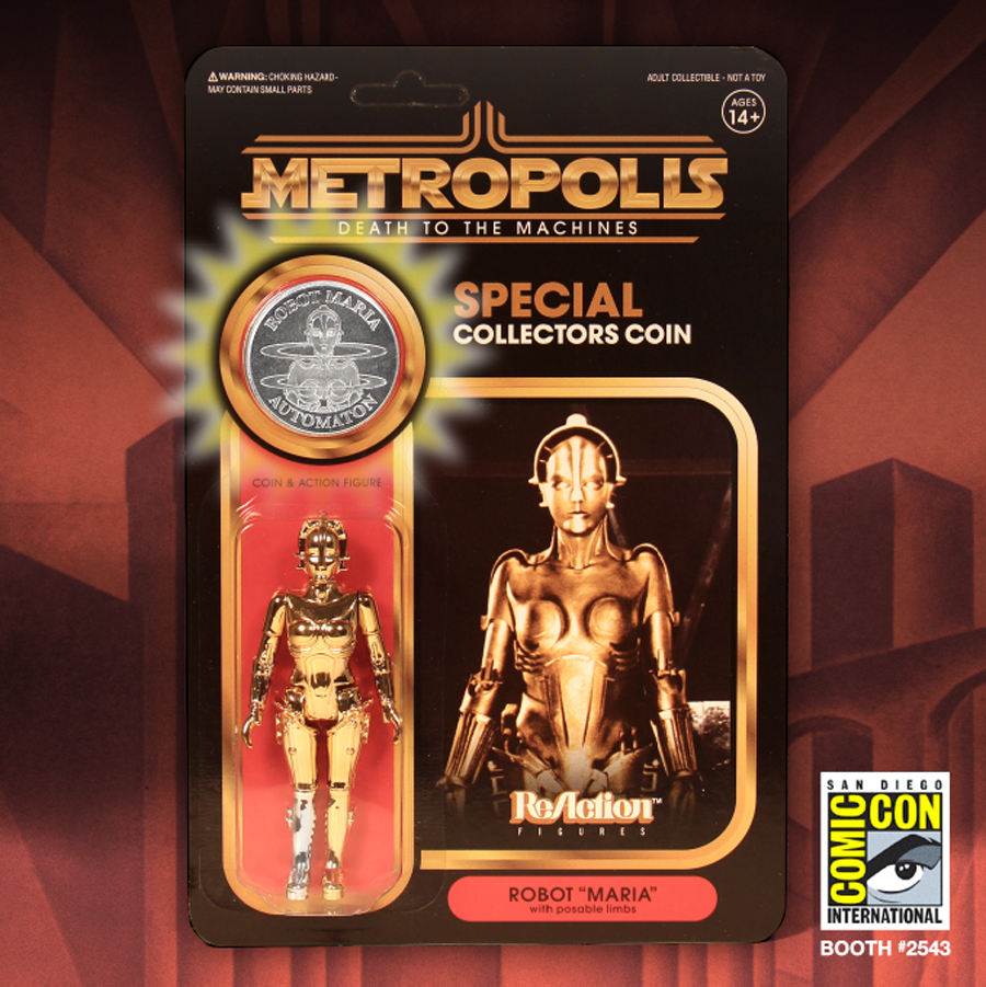 - ReAction Metropolis Maria– 3.75″ ReAction Figure from the classic silent film. Maria comes with a vac-metal finish and collectible coin. $15 each.