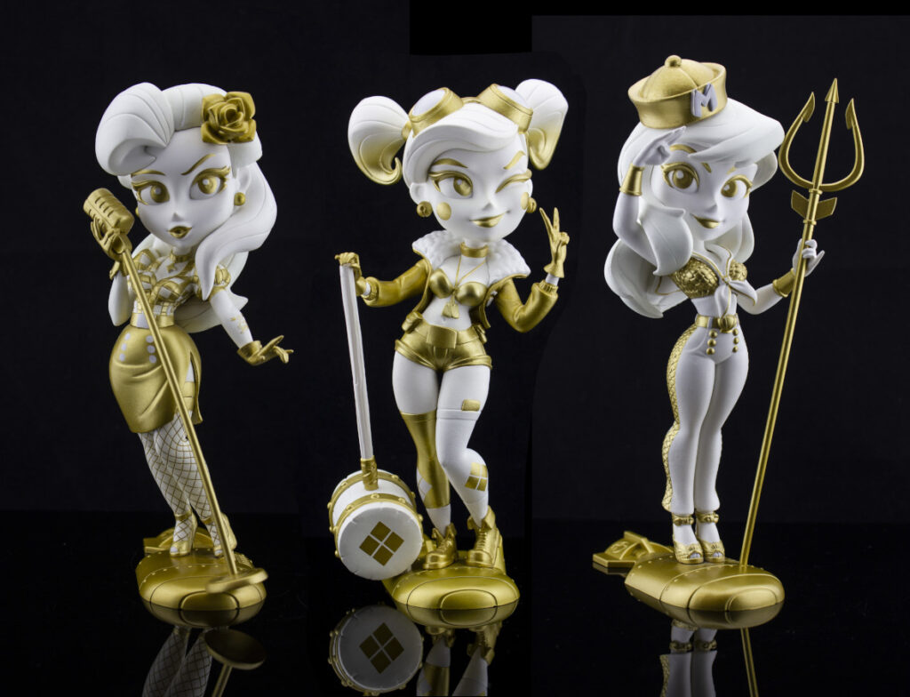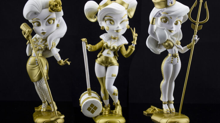 Golden Goddess DC Bombshells: Series 3 figures are variants of the regular DC Bombshells vinyl figures of Black Canary, Harley Quinn, and Mera. Like the previous releases in Cryptozoic’s extremely popular Golden Goddess variant series, these figures sport stunning gold-and-white designs inspired by classical Greek sculpture. Designed by Pedro Astudillo and sculpted by Anders Ehrenborg, the 7-inch collectibles all come packaged in Cryptozoic’s signature window boxes, each of which is individually numbered from 1 to 350. Purchasing them through the presale is the only way to guarantee you will receive a numbers matching set, meaning all three figures in your set will have boxes with the same number (e.g., 3/250).