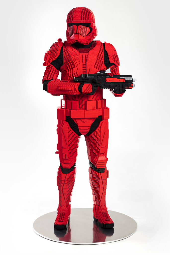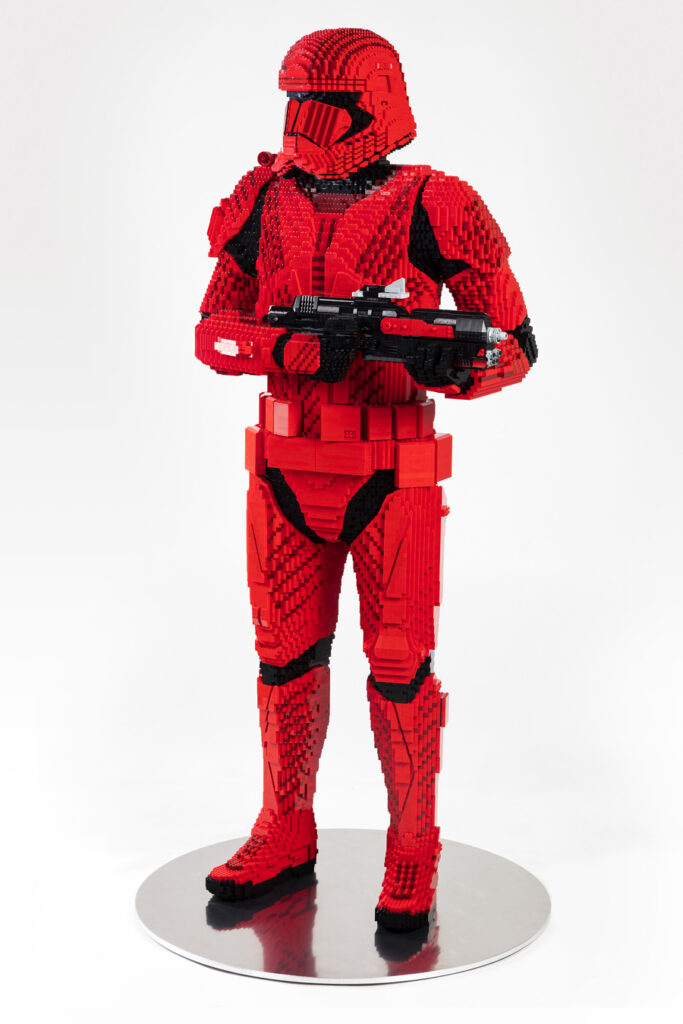 Also at the Lego booth will be a full size Sith Trooper build, standing a whopping 6ft 2inches, weighing in at 169 lbs and made of 34,307 bricks. There’s a few pics of this big guy below as well.