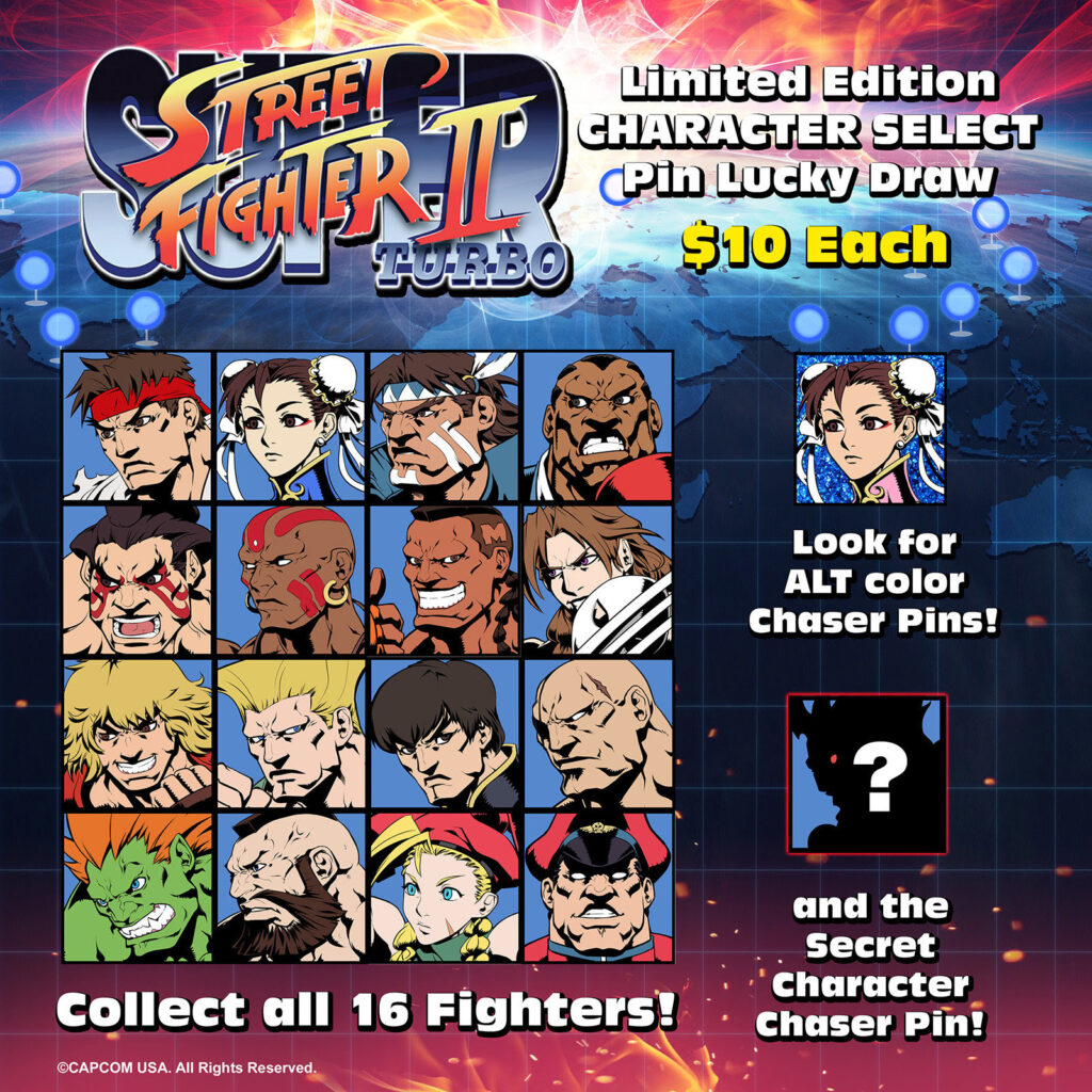 The popular STREET FIGHTER CHARACTER SELECT PINS returns in the form of a lucky draw! Quantities are limited, while supplies last. $10 per draw.