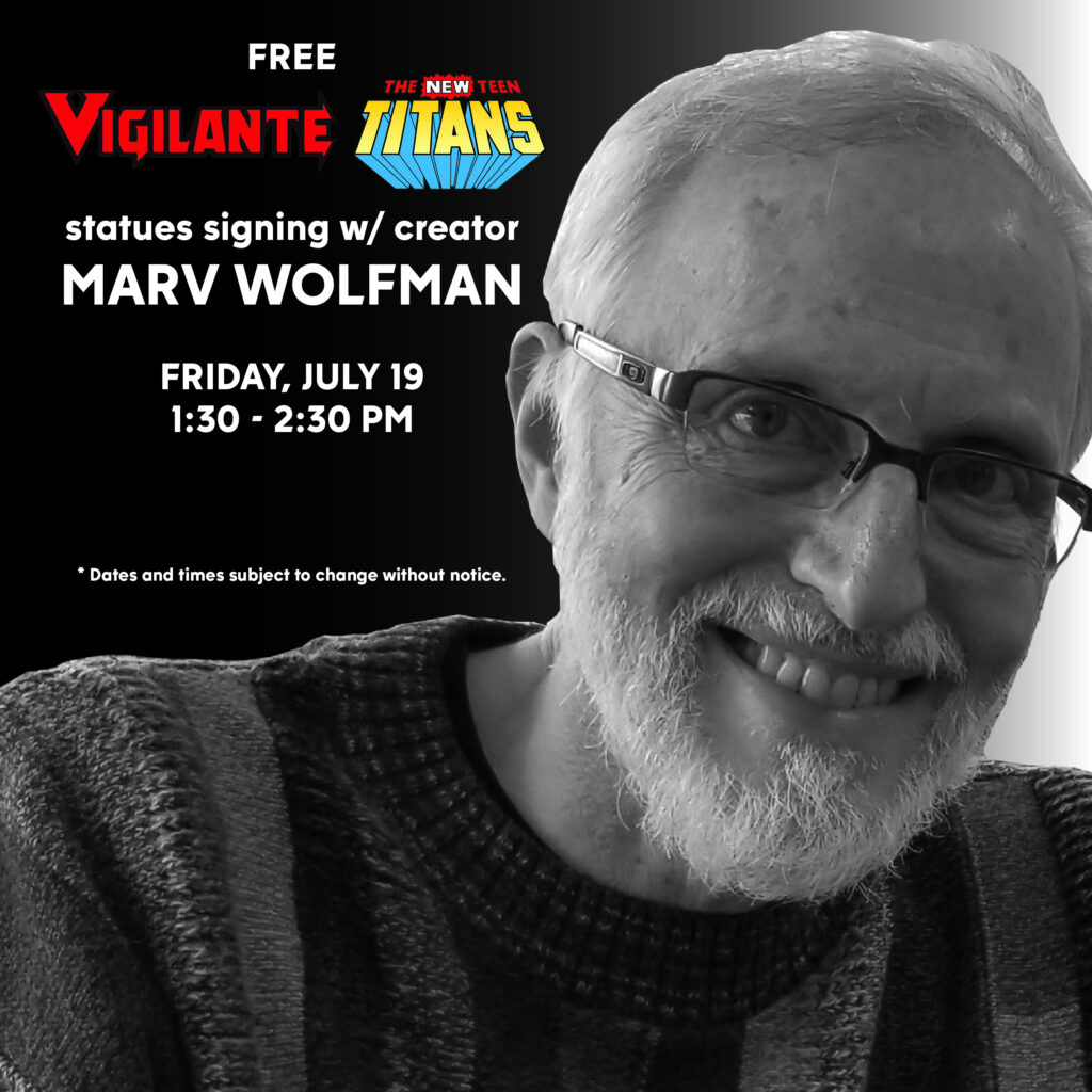 Icon Heroes today announced that Marv Wolfman, creator of DC Comics’ Vigilante and New Teen Titans, will make a special appearance at their booth (#3345) to sign their Vigilante and New Teen Titans statues FREE for customers on Friday, July 19 between 1:30-2:30 pm. Be sure to stop by and meet one of the comic industry’s legend and pick up a cool statue at the same time.