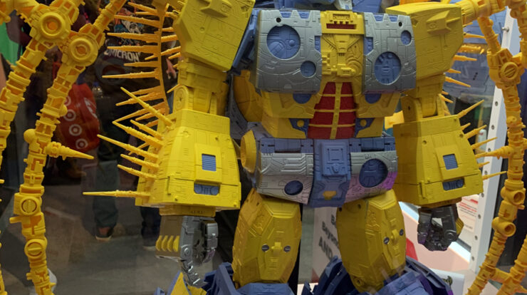 Hasbro’s Transformers focus for SDCC can really be summed up with one word – UNICRON. Anchoring a corner of the booth, he was the highlight of all things Transformers at SDCC. Of course, he had many other Transformers with him at the show including Galactic Man, Astrotrain (announced at the show), Apeface, the G1 cassettes trio of Noizu, Garafi and Frenzy (two of who have never been released in the US) and so much more.