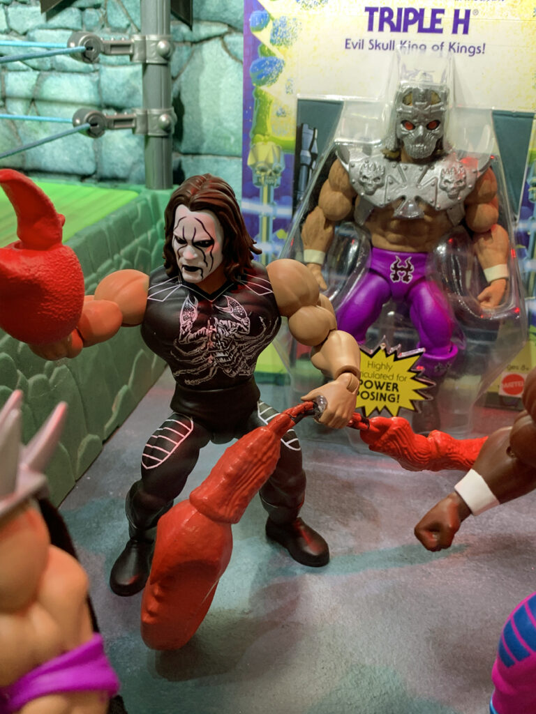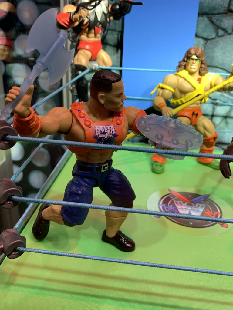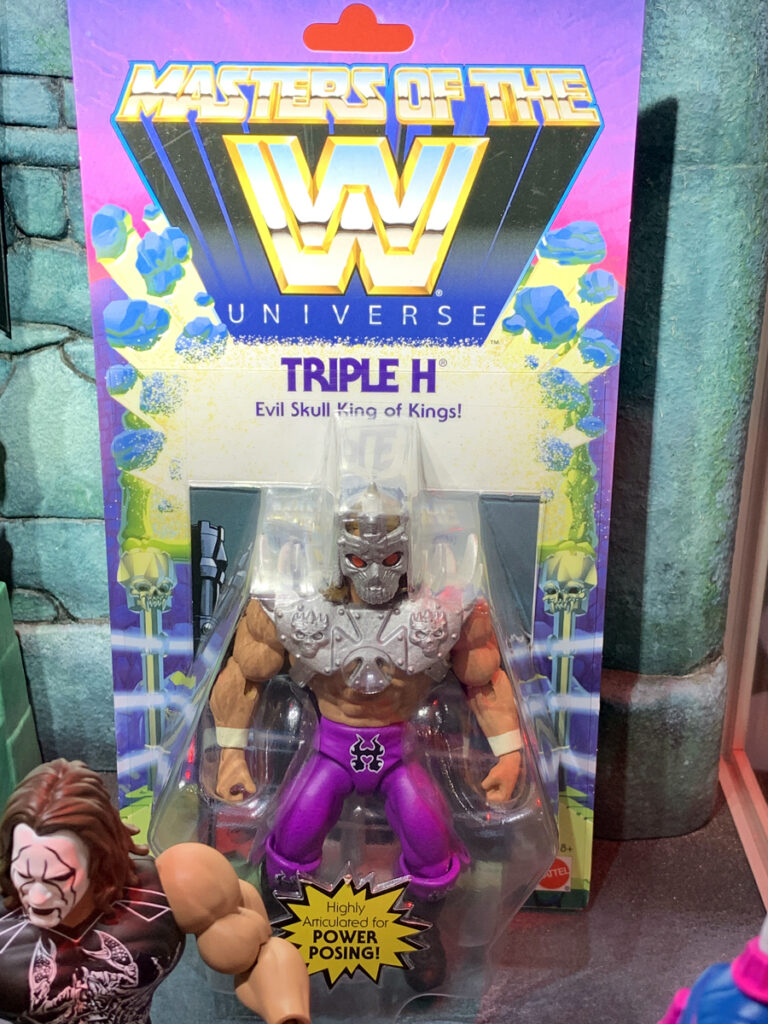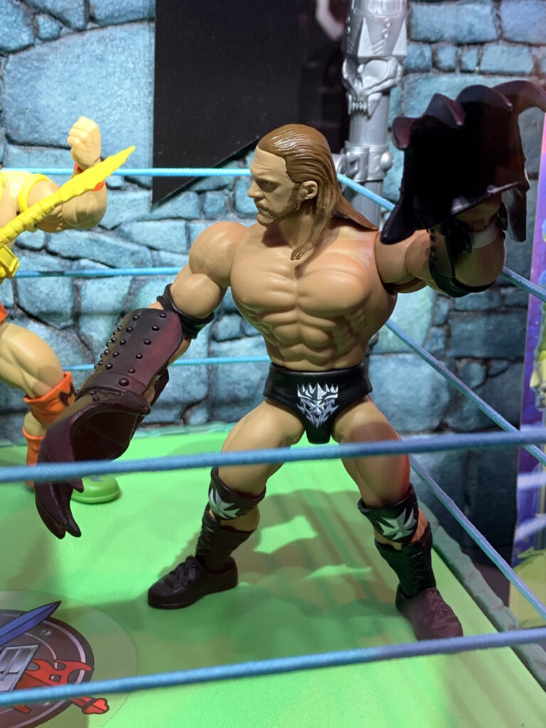 But one thing really caught my eye – Mattel is taking their WWE brand and crossing it over with other properties. On display at the show were WWE x Ghostbusters and WWE x Masters of the Universe. The Masters of the Universe crossover figures are amazing and showcase a great mash-up of brands. Check these out below.