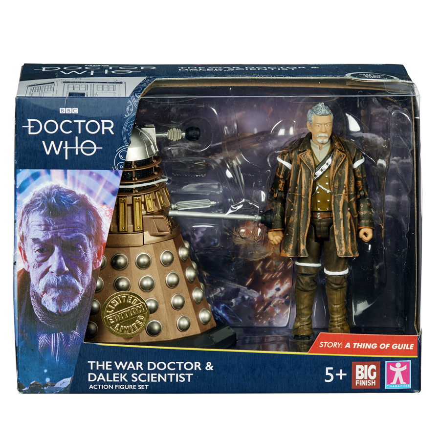 - The War Doctor and Dalek Scientist Action Figure Set – has the Doctor as played by John Hurt in the War Doctor Audio episodes, the Dalek included is a scientist and works independently of High Command.