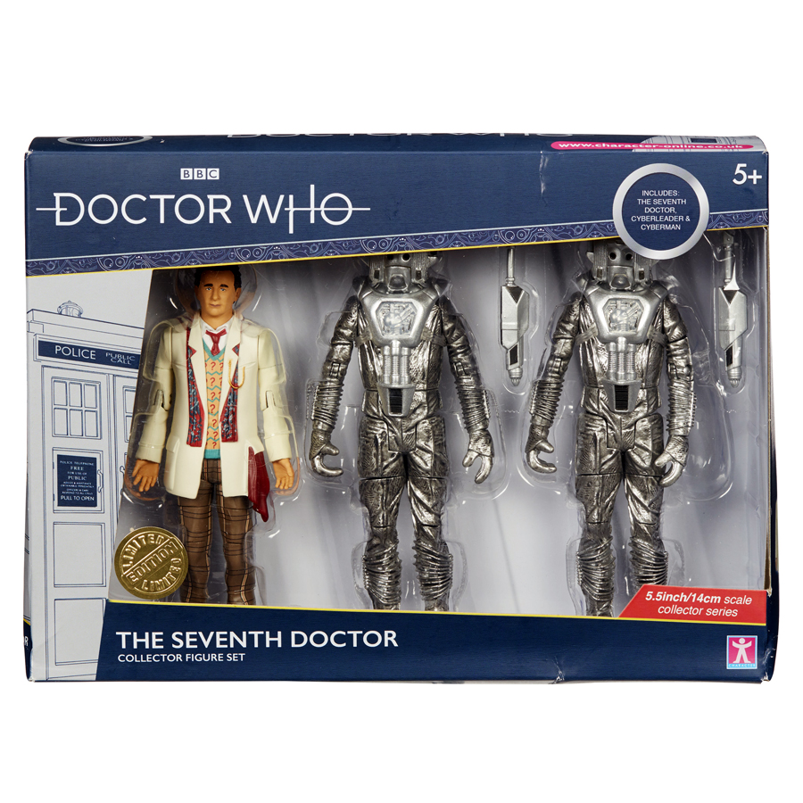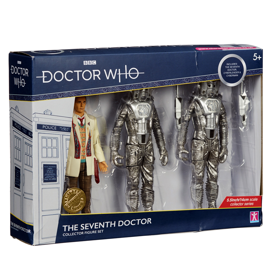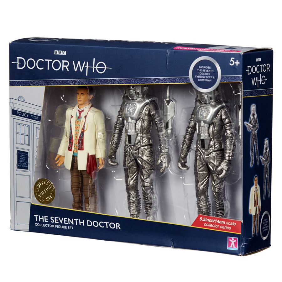 - The Seventh Doctor Collector Figure Set – The Doctor wearing his cream jacket, jumper and ubiquitous plaid trousers along with a Cyberman and Cyberleader each with Cybergun accessories.