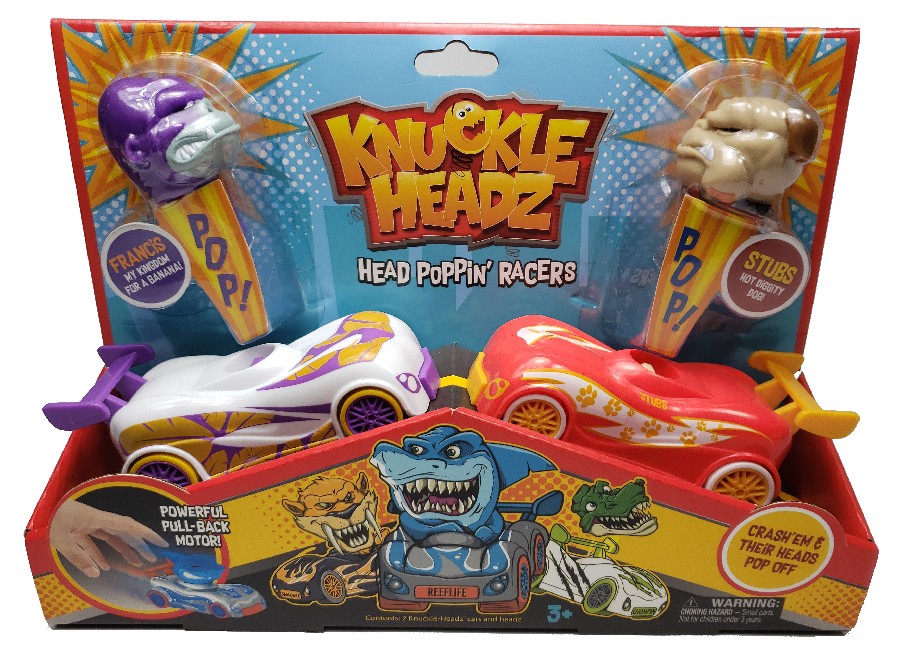 SD Toyz announced the release of Knuckle-Headz Head Poppin Racers. Fueled by a powerful pull-back motor, Knuckle-Headz simulates medieval jousting with a few modern twists. Six exciting new collectible characters face off in a battle to see which can keep its head. Define the battlefield, aim your vehicle at your opponents, pull back for maximum momentum, and let them zoom toward each other.