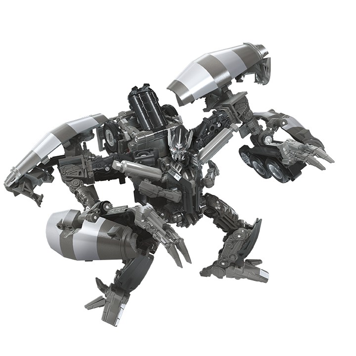 The Studio Series 55 Leader Class CONSTRUCTICON SCAVENGER figure is 8.5 inches tall, features vivid, movie-inspired deco and converts from robot to excavator mode in 25 steps. Use the removable backdrop to showcase CONSTRUCTICON SCAVENGER in the Pyramid Desert Battle scene from TRANSFORMERS: Revenge of the Fallen, where he combines with his comrades to form CONSTRUCTICON DEVASTATOR. The Studio Series 55 Leader Class CONSTRUCTICON SCAVENGER figure is highly articulated for poses.