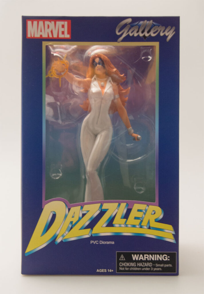 For years the only Dazzler figure I had was a Toy Biz figure, a repaint in the ‘Marvel Hall of Fame She-Force’ line. To be honest, it was a pretty terrible figure. But that was all there was. Many years later, I added a Mini-mate to my collection, but it was her blue costume…but whatever, it was ages ahead of that Toy Biz figure. Then Hasbro stepped up to the plate in a big way with a Marvel Legend of the proper Disco Dazzler. I was in heaven. Then the do what? The release a second Dazzler, now in her blue costume on a retro card. I was pretty happy with my Dazzlers, but I knew there was one more coming. See, at the 2018 Toy Fair, Diamond Select Toys had a Dazzler on display in their showroom, part of their PVC Marvel Gallery line. I knew I had to have it, and every time I saw Zach after that Toy Fair I asked when Dazzler was being released.