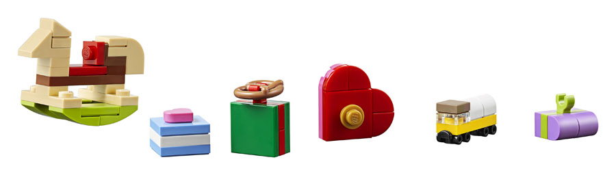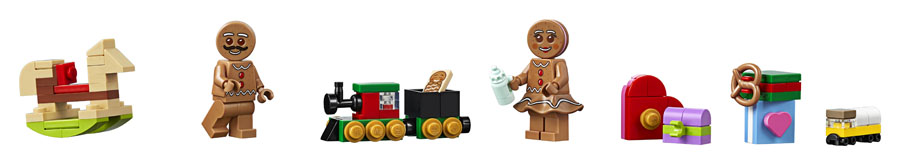 - Includes 3 LEGO® figures: a gingerbread man, gingerbread woman and gingerbread baby.