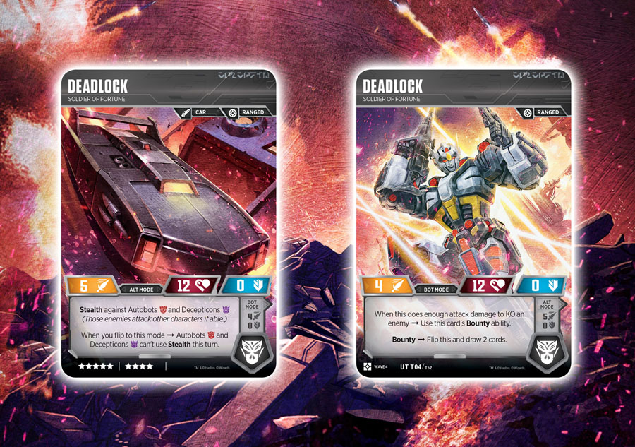 TRANSFORMERS character cards and fights for victory, switching their characters between different modes and employing a vast array of weapons and upgrades along the way. Like other TRANSFORMERS TCG Character Cards, Mercenaries are distributed in Booster Packs across varying levels of rarity.