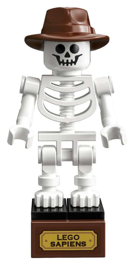 - Also includes a sapiens skeleton figure with a display stand, and a paleontologist toy minifigure with a buildable crate, plus dinosaur egg, bone, hat and book elements for creative role-play.